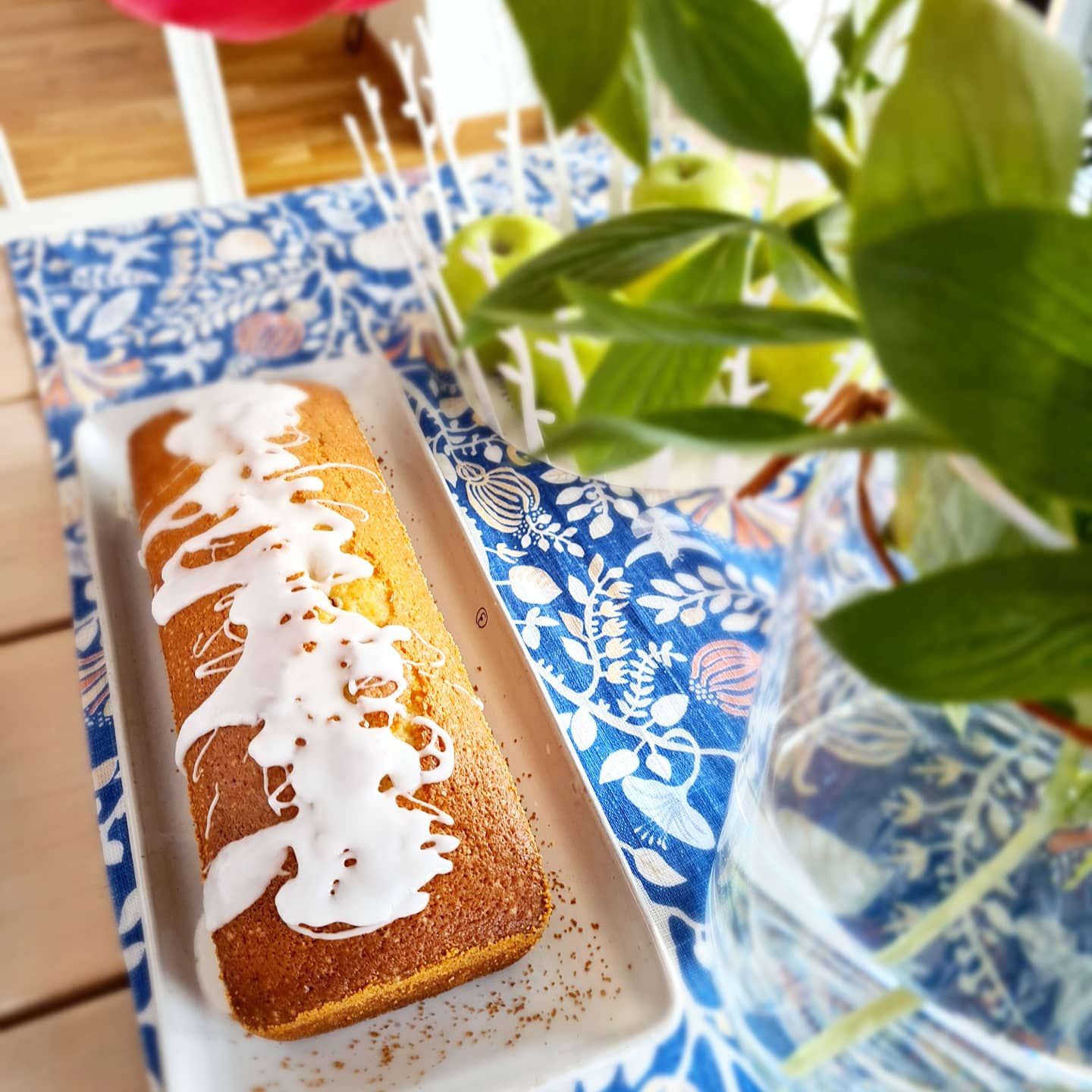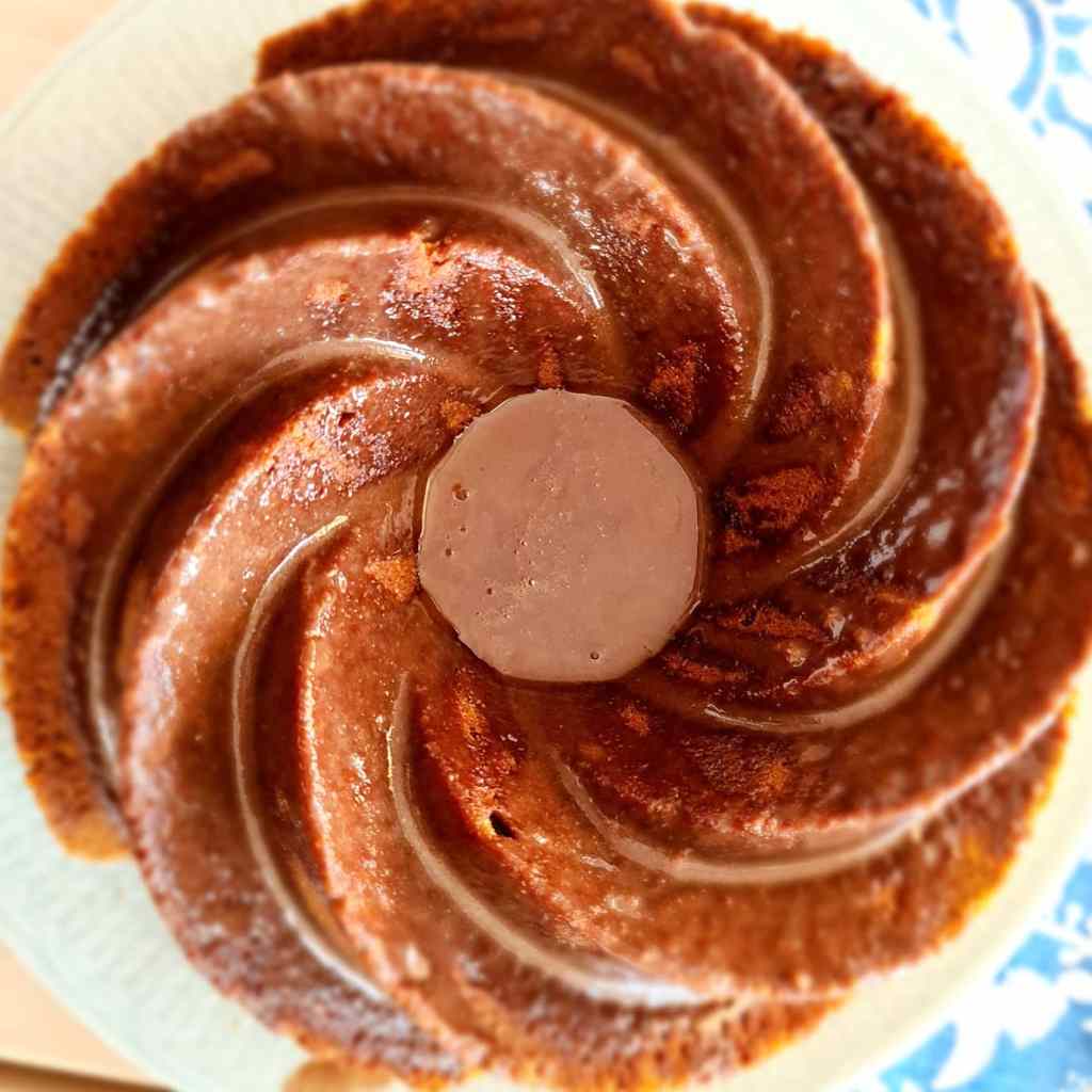 3. Stjälp upp kakan och låt svalna lite. Blanda ca 1 dl florsocker med några tsk citronsaft. Ringla över kakan.