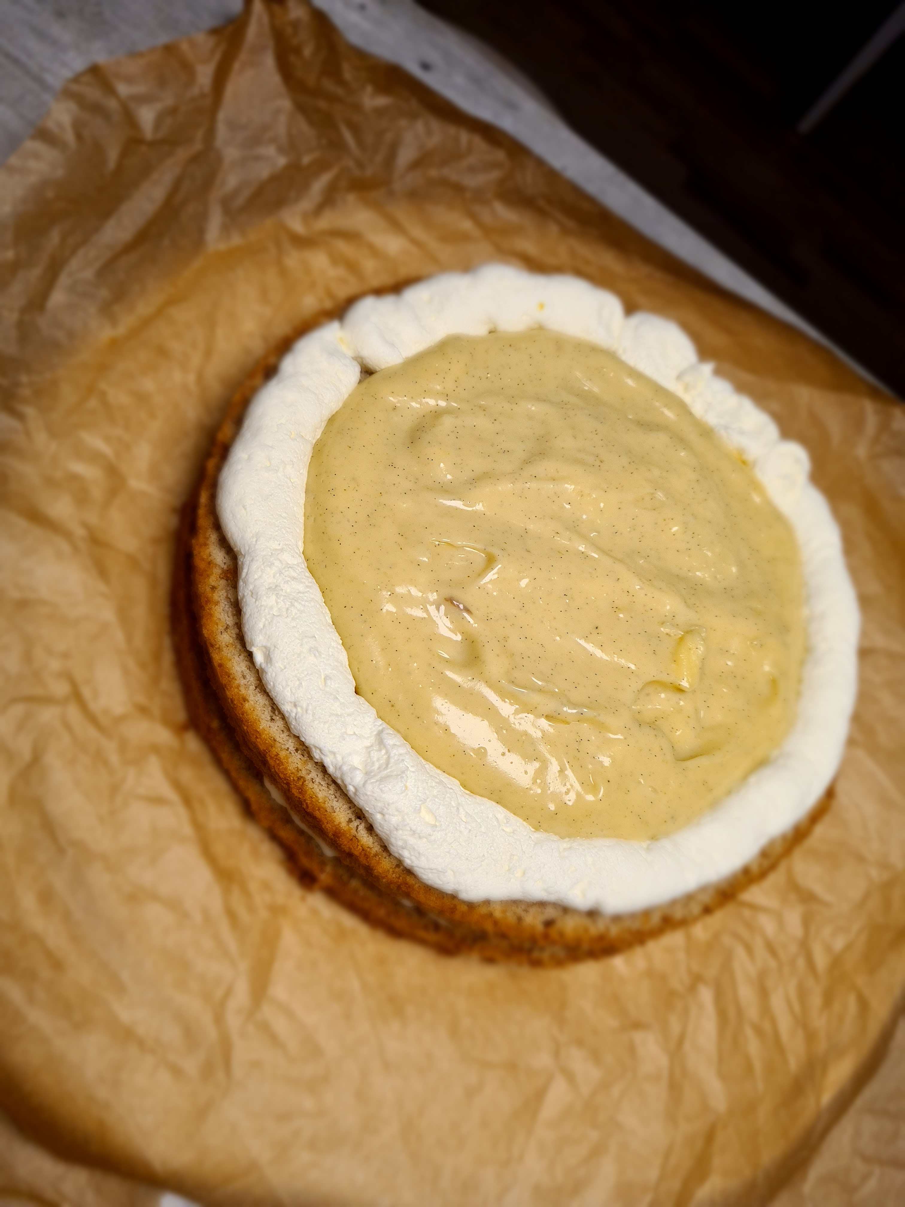 1. Sätt ugnen på 175 grader. Klä en rund springform med bakplåtspapper. Vispa äggvitorna till ett fast skum. Vänd försiktigt ner socker, vaniljsocker och mandelmjöl. Bred ut i formen och grädda ca 30 minuter. Låt svalna.